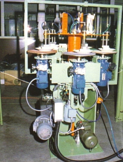 CARATTERISTICHE: Potenza installata: kw. 2,5. Macchina adattabile a tutti i formati. Produzione: 2.500 pz./ora La macchina è dotata di una carenatura ermetica con aspirazione filtrata e decantatore con contenitore recupero polveri. LEGENDA: 1) Linea di arrivo. 2) 3) 4) Dischi rifinitura piede. 5) Linea uscita. |
